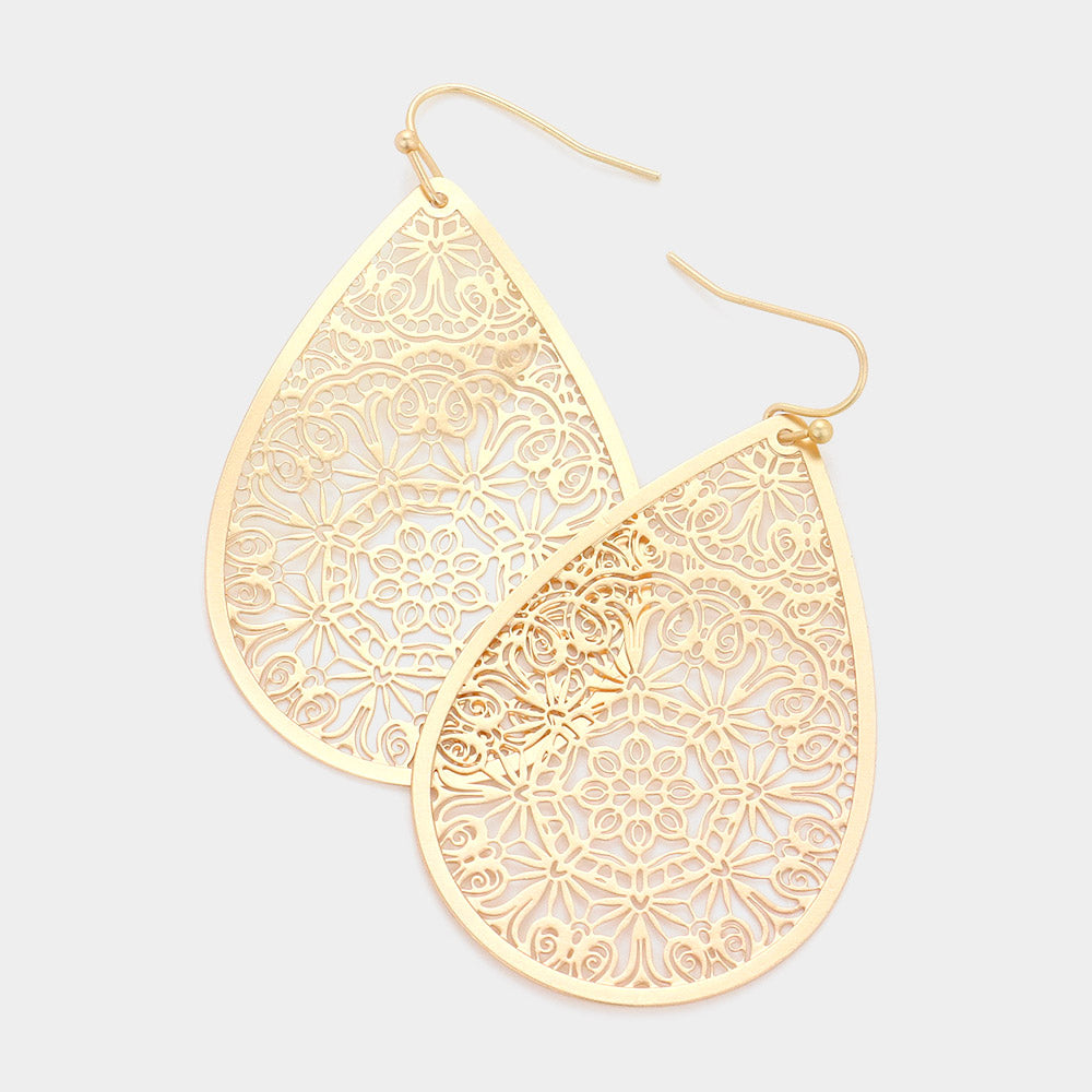 Here's why this is perfect for Whatever Your Day Brings®: Delicate golden teardrops adorned with intricate filigree detailing—these earrings are the perfect accessory to elevate any outfit with a touch of elegance and whimsy.