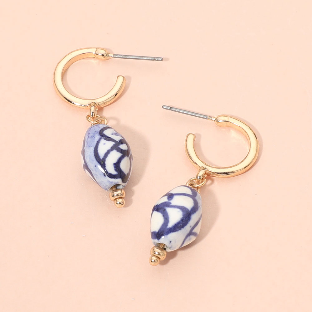 Details: The "Santorini" Earrings are for pierced ears and measures .75" by 1.5" in length and feature a hand painted ceramic bead.