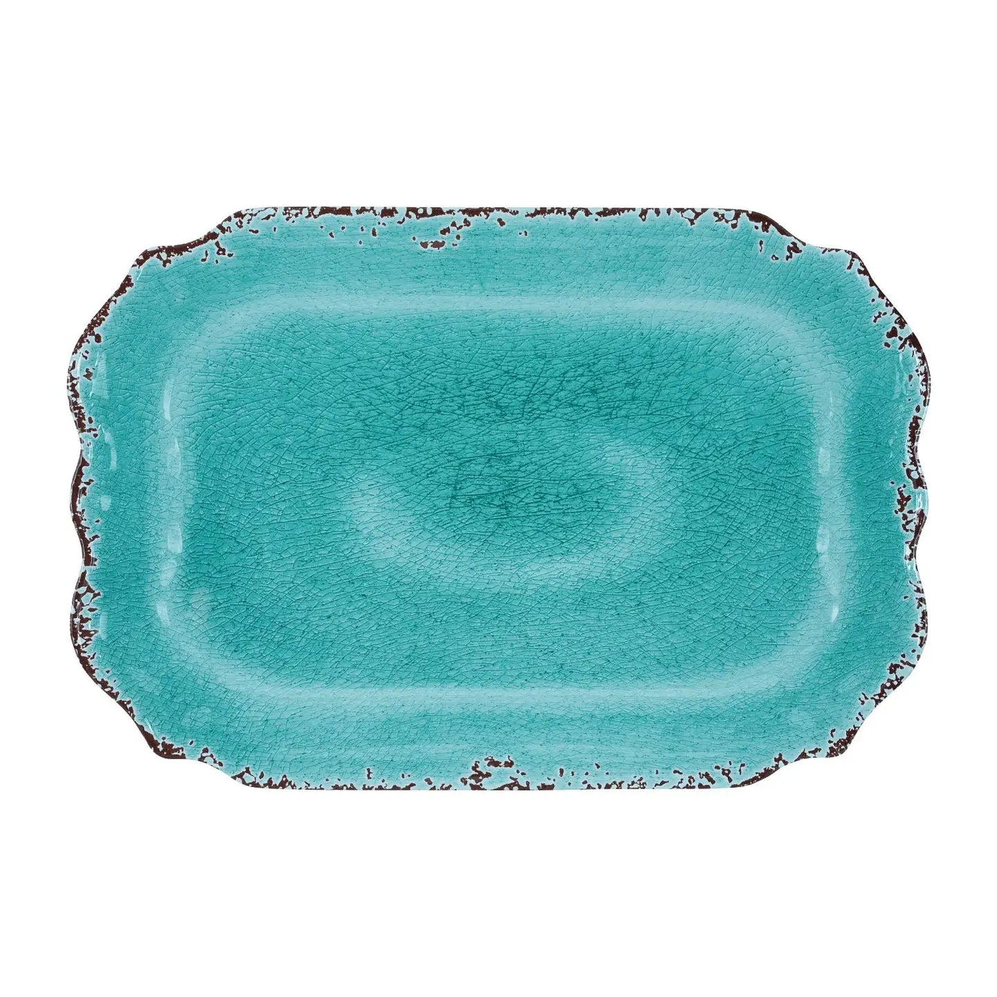 Here's why this is perfect for Whatever Your Day Brings®: The generous 20" platter accommodates everything from casual weeknight spreads to elegant entertaining, while the durable melamine construction withstands daily use and dishwasher cleaning without compromise. Its striking turquoise crackle finish adds a bold, fashion-forward pop to any table setting, making it as versatile for everyday dining as it is for special occasions.