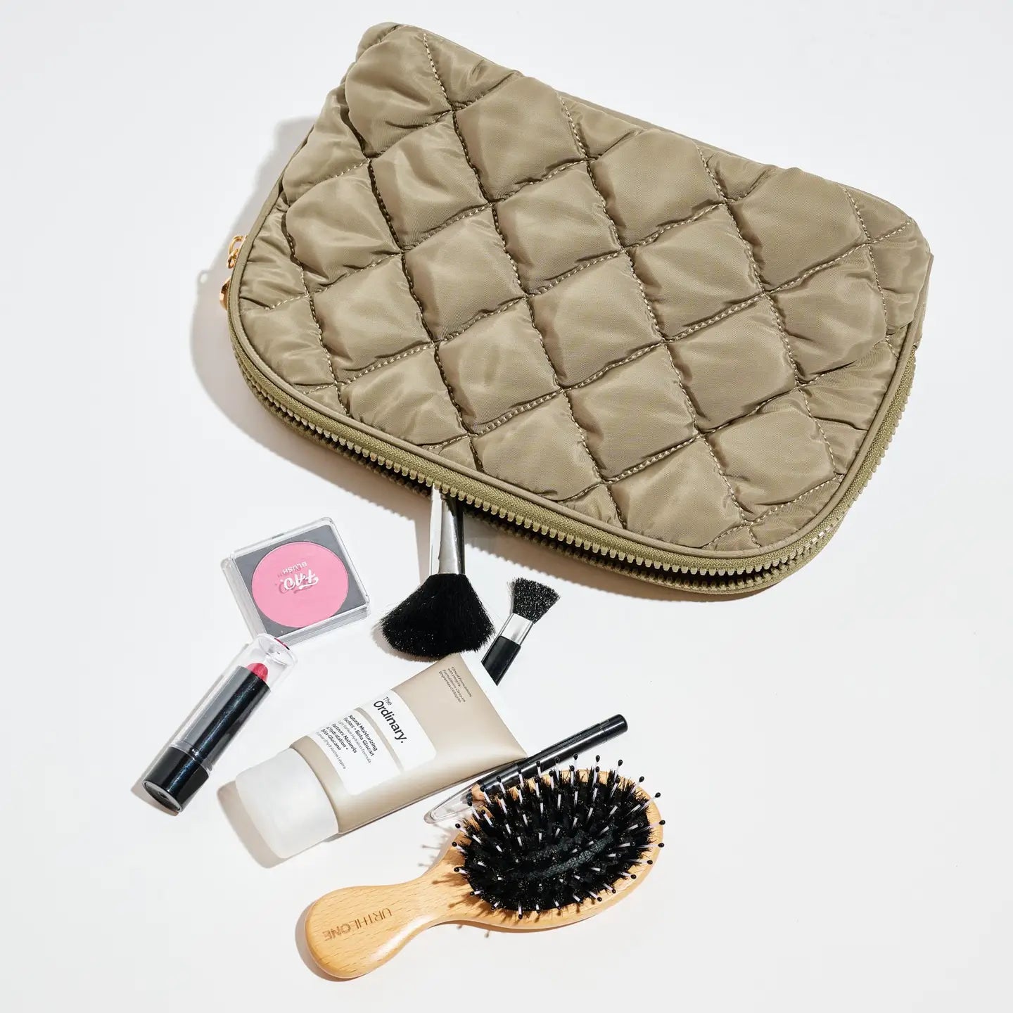 Here's why this is perfect for Whatever Your Day Brings®: With a sleek, structured silhouette and luxurious cushioning, it adds a touch of sophistication to any ensemble. The spacious interior offers ample room for your beauty essentials, while the secure zipper closure ensures everything stays neatly organized
