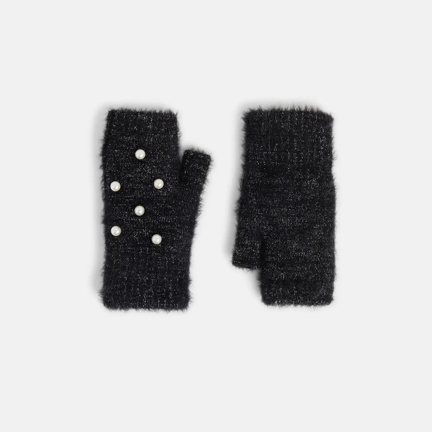 Details: Beat the winter chill in style with our Pearl Embellished Fingerless Gloves. These cozy gloves feature elegant pearl embellishments that will elevate any look. Keep your hands warm and your style on point this season.