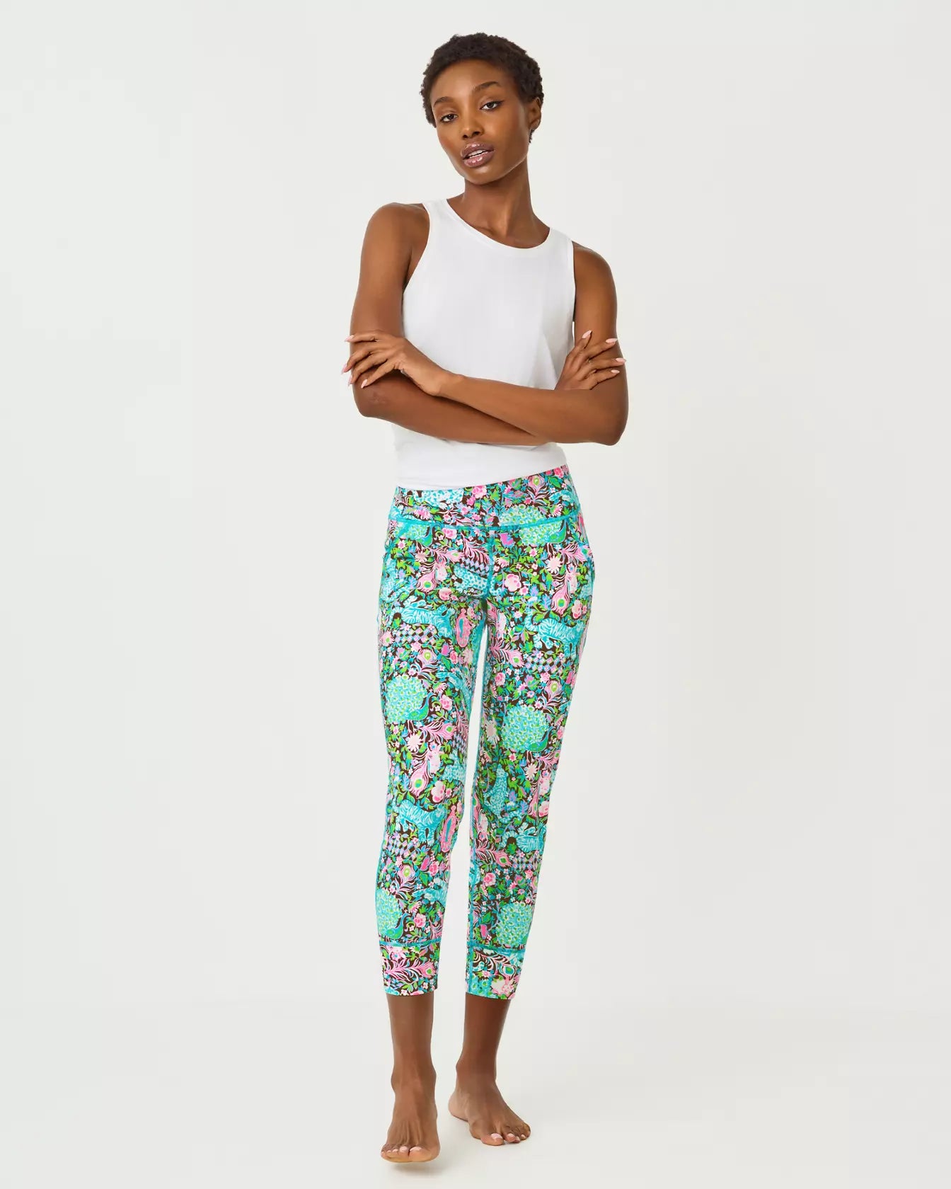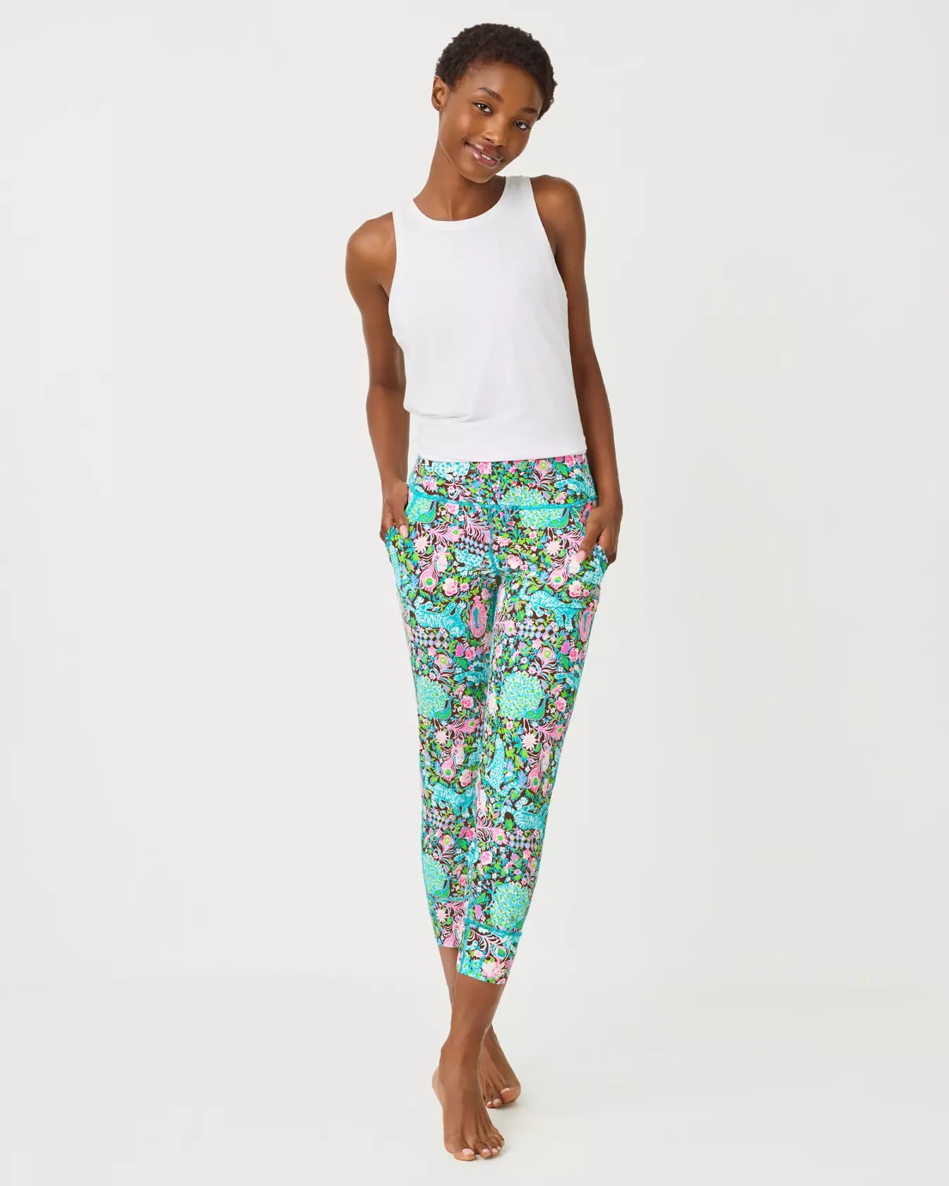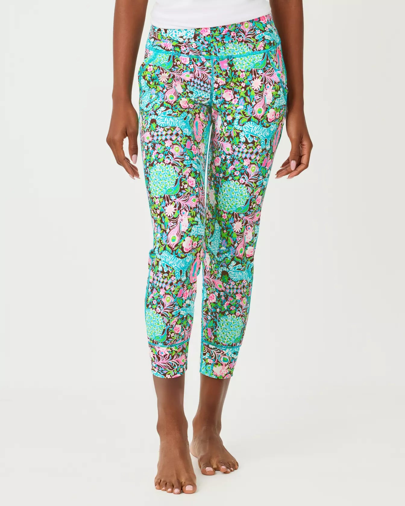 Here's why this is perfect for Whatever Your Day Brings®: Escape to the wild side in these show-stopping Royal Zoo Luxletic leggings. Featuring Lilly's iconic animal-print design in vibrant jewel tones, these high-rise beauties offer serious style without sacrificing comfort. The 24" inseam hits just right, while UPF 50+ protection keeps you covered during resort getaways, poolside lounging, or everyday adventures. Luxletic fabric moves with you—stretchy, breathable, and ready for anything from yoga to weekend travels. Pair with your favorite tank or oversized tee and let your wild, colorful spirit shine.