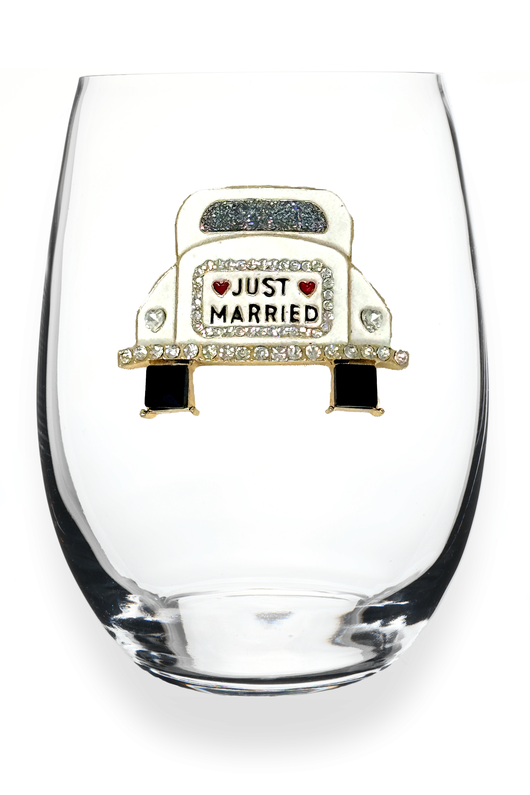 Here's why this is perfect for Whatever Your Day Brings®: Cheers to the happy couple! This charming stemless wineglass is the perfect way to toast newlyweds or celebrate your own "just married" milestone. With a fun, celebratory design and practical stemless shape, it's ideal for everyday sipping or displaying as a keepsake. Whether it's a wedding gift, honeymoon souvenir, or a playful reminder of your special day, this glass brings a smile to every sip. Durable and versatile, it pairs beautifully with any tablescape or bar collection.