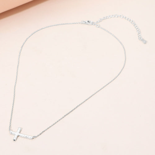 The "Hammered Side Cross" Necklace
