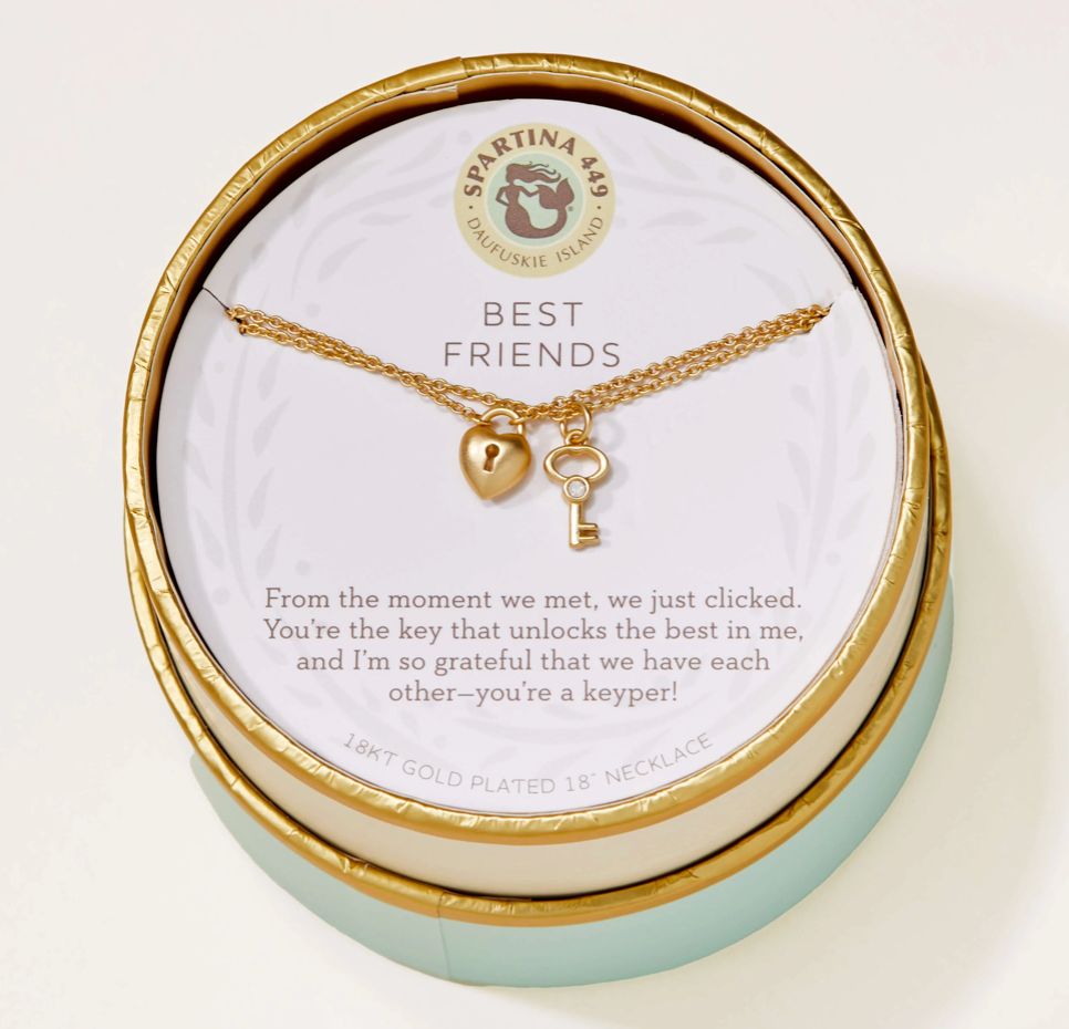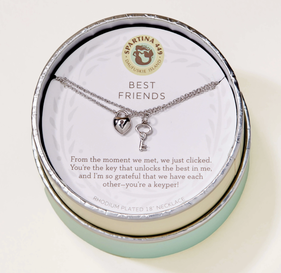 Here's why this is perfect for Whatever Your Day Brings®: Wear our Best Friends Necklace as a reminder that best friends bring out the best in us. Featuring a 2-piece set, one heart lock pendant and one key pendant, this special piece comes packaged inside a beautiful box with the message for 2 best friends: "From the moment we met, we just clicked. You’re the key that unlocks the best in me, and I’m so grateful that we have each other—you’re a keyper!"