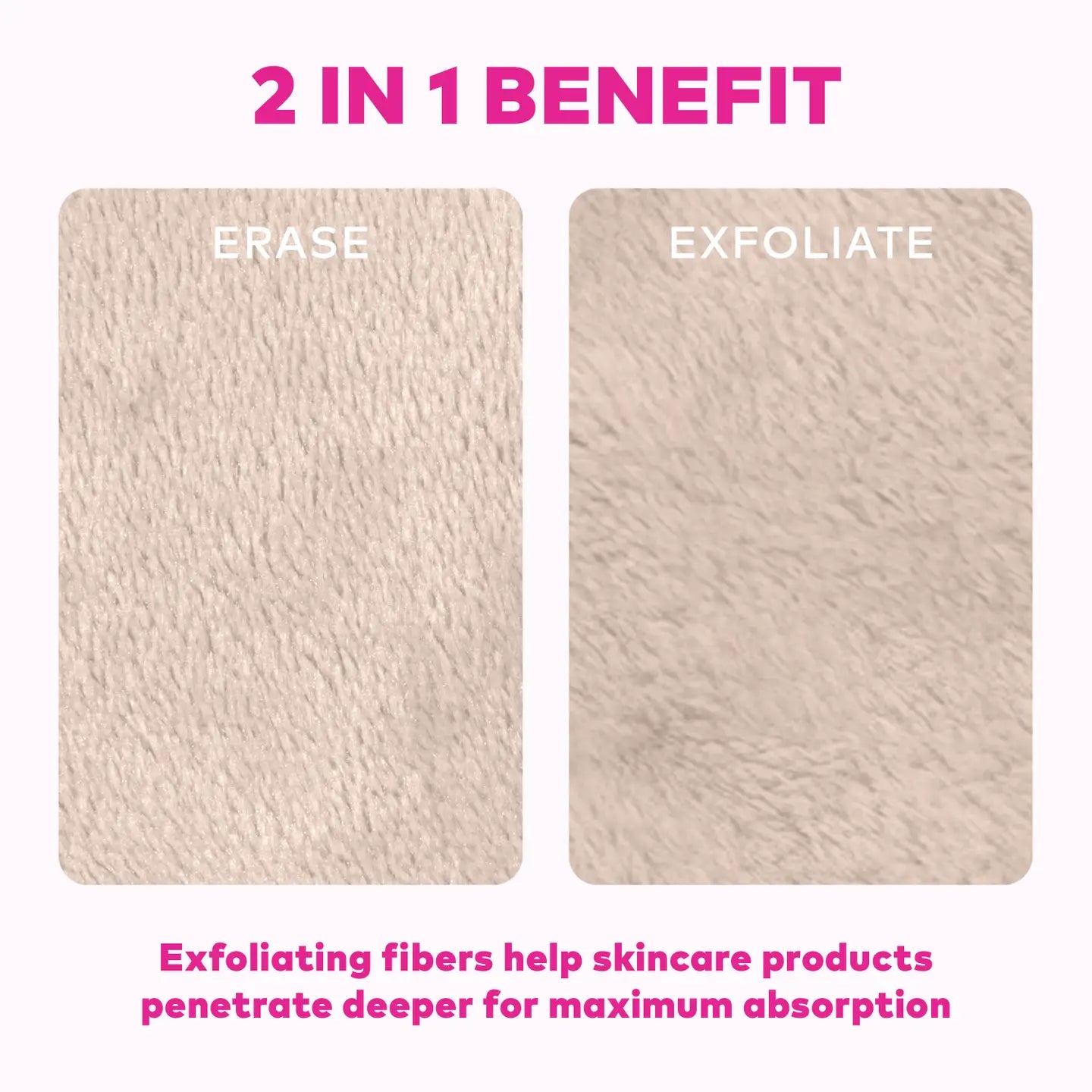 Here's why this is perfect for Whatever Your Day Brings®: ✓ Dermatologist Recommended ✓ SmartErase™ Technology ✓ Reusable & machine washable ✓ Great for Everyday MakeUp ✓ Great for Travel, Teens & gym bags ✓ Great for sensitive & acne prone skin ✓ Clinically proven to remove makeup & sunscreen 2.5x better than the leading brand of makeup wipes ✓ Cruelty-free & 100% vegan How to use: Wet with warm water. The warmer, the wetter, the better! Use gentle circular motions to erase makeup with the short fiber side. Flip to long fiber side (side with tag) to exfoliate the skin. After 2 Week Study: • 92% said skin felt more hydrated • 77% saw improvement in skin texture 100% felt skin was cleaner after use