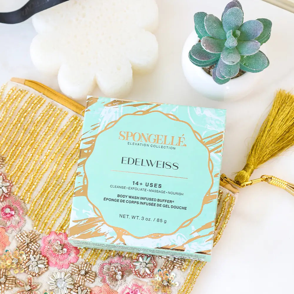 Nestle into an unforgettably refreshing cleansing experience with our elevated private reserve collection. Unleash Spongellé’s creamy fragrance by placing your body wash-infused buffer under running water to reveal an airy, cloud-like hybrid of exfoliating massage and silky aromatic cleansing.