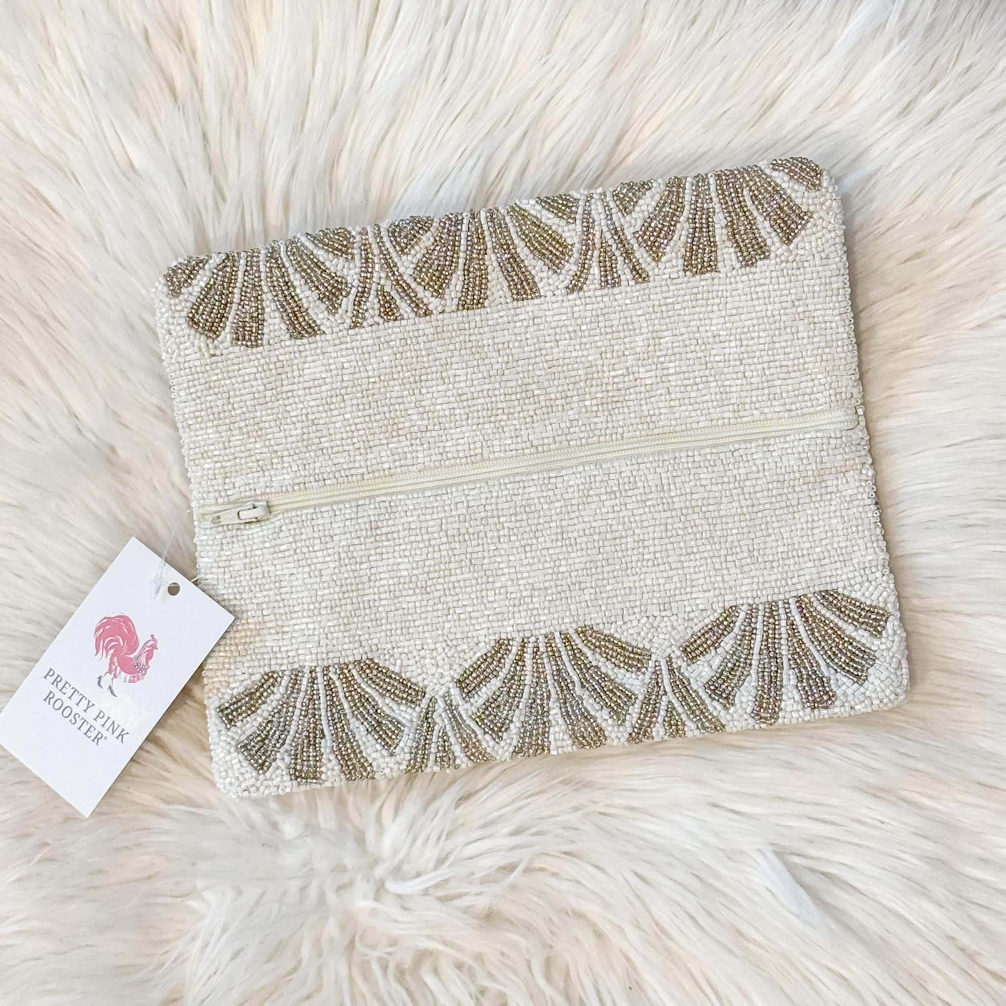 Here's why this is perfect for Whatever Your Day Brings®: Made out of gorgeous beading, the "Yrene" beaded clutch is the perfect combination of shimmer and practicality. With a fold over silhouette and features a interior zip you'll be sure to keep all your belongs safe. From weddings to date night, this clutch will effortlessly match with any look for a classy and elevated evening!