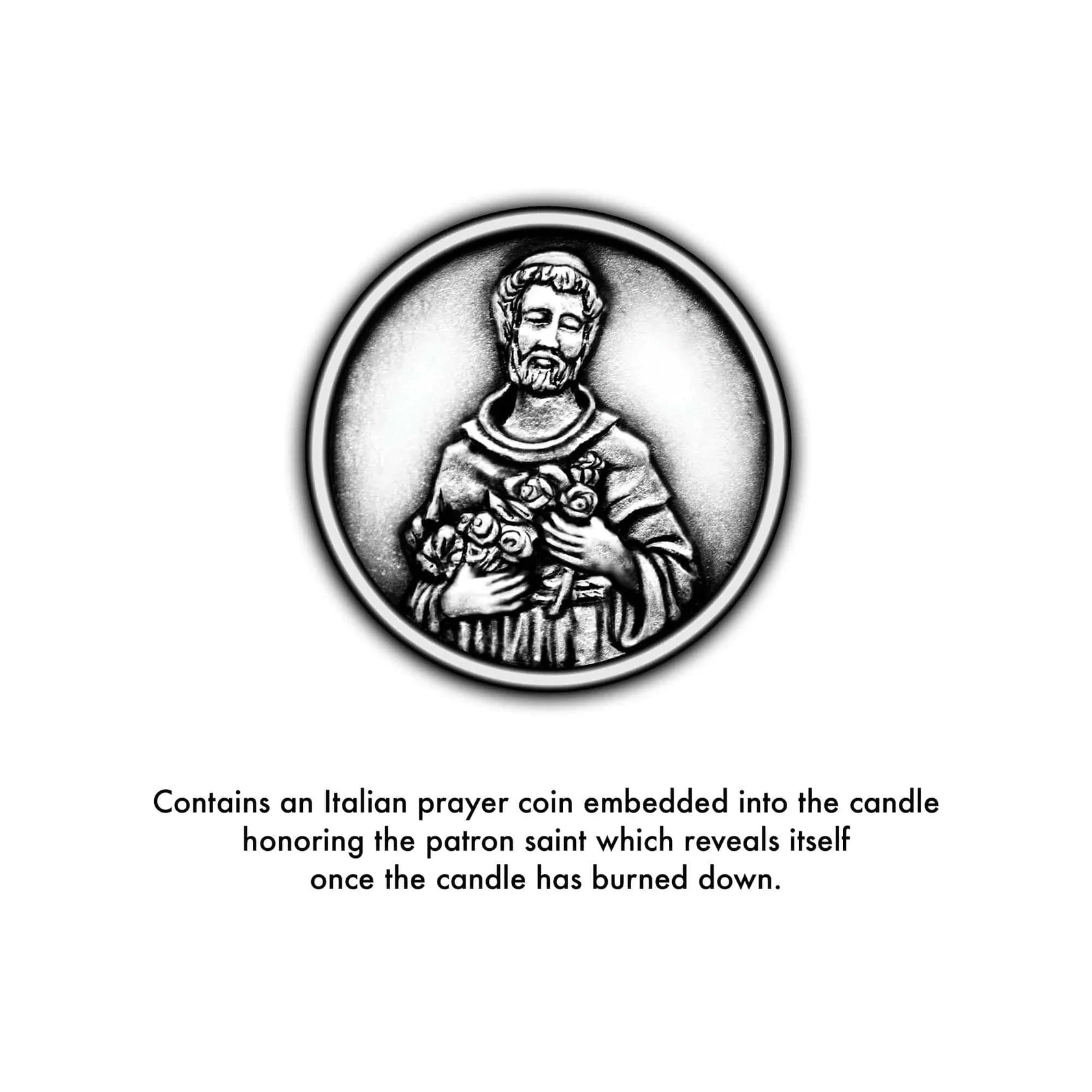 Here's why this is perfect for Whatever Your Day Brings®: Each candle comes with a prayer to the patron saint, holy oil as part of the wax, and a prayer coin embedded into the candle. Before the first lighting, read out loud the prayer to the patron saint, then light the candle. Once the wax has burned all the way down after many uses, remove the coin at the bottom and keep it in your wallet, purse, or car - or bury it in your yard as a way of blessing the entire household. SAINT products benefit St. Jude Children’s Research Hospital to support their lifesaving mission: Finding cures. Saving children.®