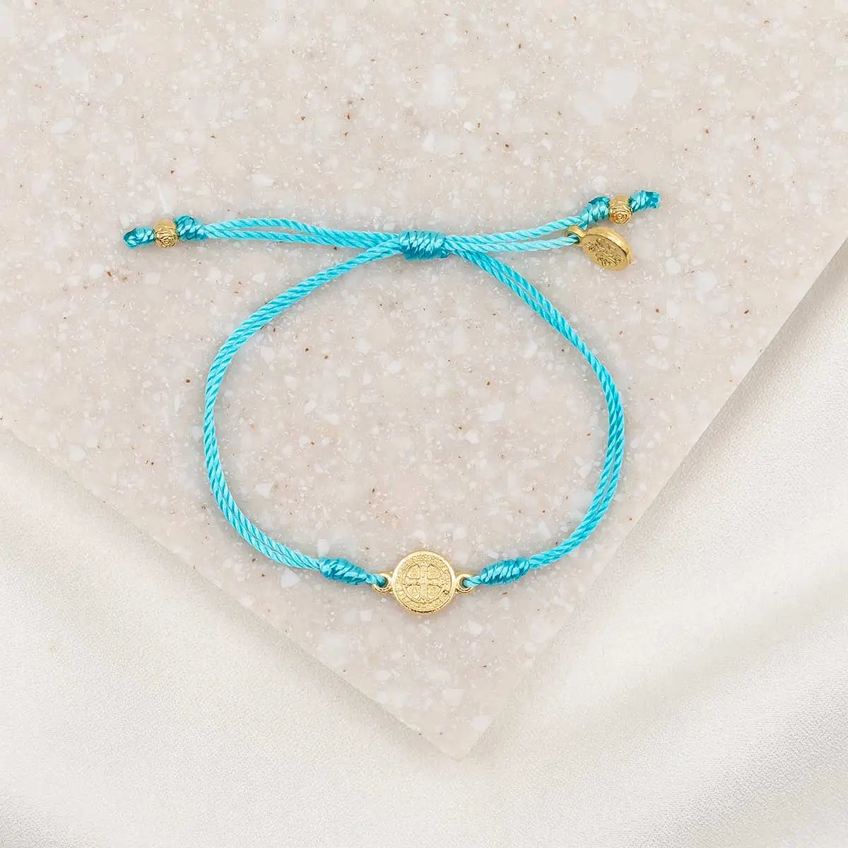 Details: The “Breathe Blessings” Bracelet is adjustable dainty string bracelet opens to 9.5" diameter. Handwoven in Medjugorje, Bosnia and Herzegovina. Silver or gold-tone 1 cm Benedictine Medal of protection and our logo charm. Medals hand-cast in a sacred site in Italy. Breathe Blessing Bracelets come on a card with an inspirational message and a reminder of the power of prayer. Each Rainbow Breathe bracelet is unique and varies slightly with each bracelet due to gradient color changes in the cording. One of our most popular bracelets!
